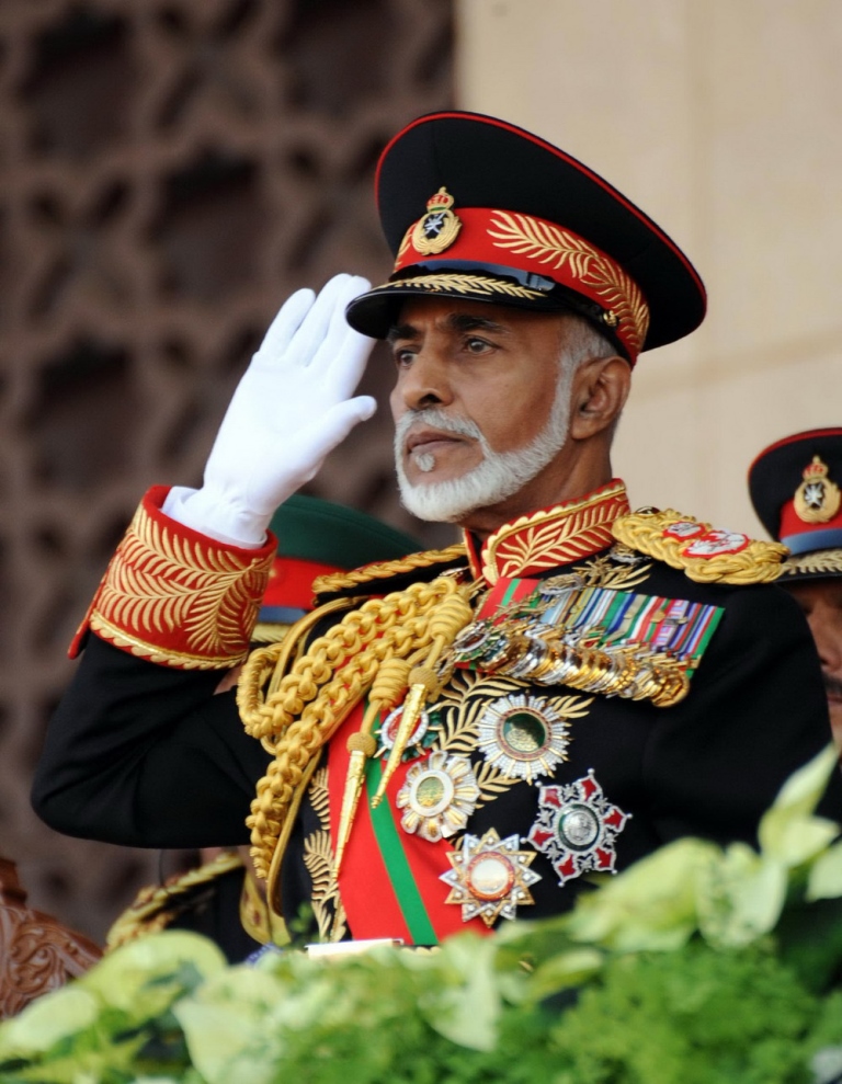 السلطان قابوس بن سعيد سلطان عمان بالزي العسكري النيلين