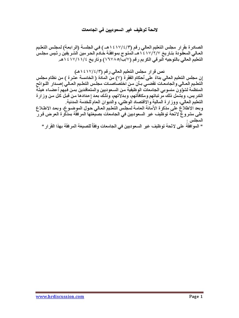 Doc لائحة التوظيف للمتعاقدين من غير السعوديين Ahmed Gebaly Academia Edu