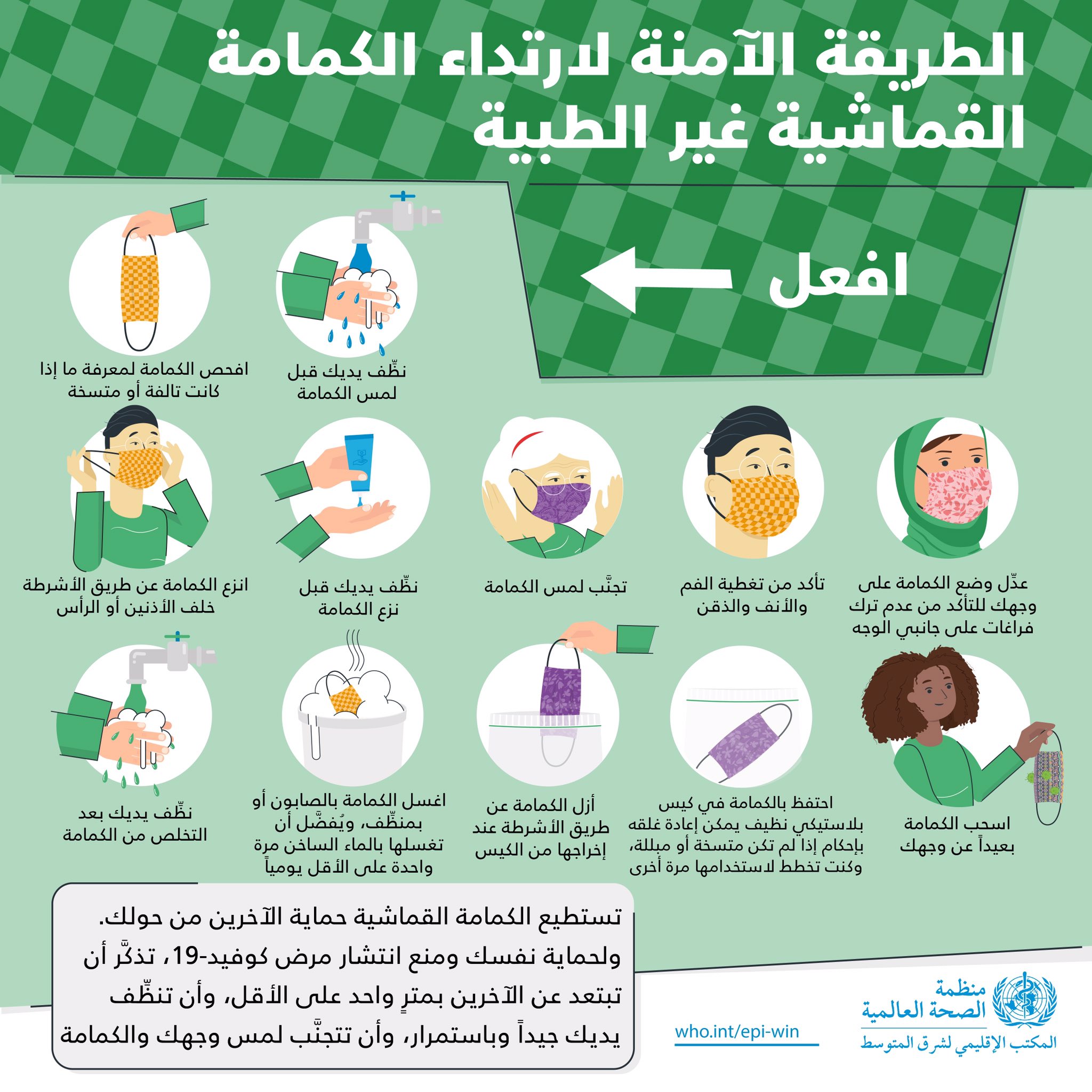 Who Egypt On Twitter ما يجب فعله عند ارتداء الكمامة القماشية غير الطبية تستطيع الكمامة القماشية حماية الآخرين من حولك لحماية نفسك يجب دائما الابتعاد عن الآخرين بمسافة لا تقل عن